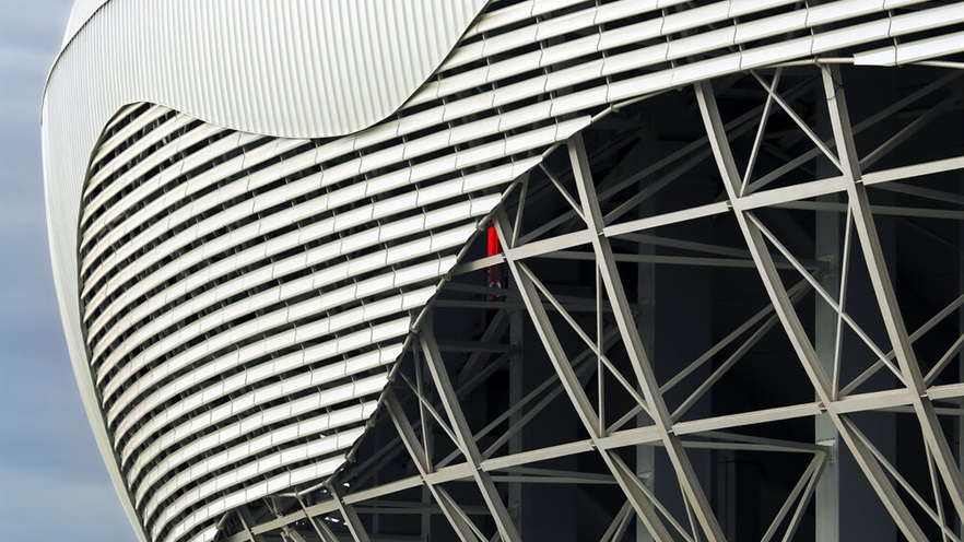 Kjo rezultoi në disa përbërës: një infrastrukturë për aksesin, e përshtatur në tokë; unaza e ngritur e këmbësorëve; hapësira të mbështjella nën stenda, të renditura në mënyrë rigoroze dhe të diferencuara për kategori të ndryshme të përdoruesve; një arenë e cila bën kalimin nga rrumbullakësia e saj tek një formë tërësisht katrore ; një kurorë kolosale me harqe mbulon stendat dhe mbështet të gjitha pajisjet e kërkuara. Sistemet arkitektonike të Alumil Smartia M11000 dhe Smartia M6 u zgjodhën për të pajisur fasadat e këtij stadiumi të bukur, duke kontribuar përfundimisht në realizimin e të gjitha parametrave të përcaktuara të dizajnit dhe performancës.