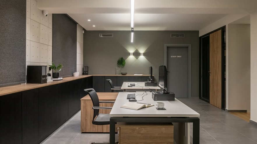 Organizimi i katit përdhe përfshin një zonë ndenjeje dhe mikëpritjeje, një zyrë kontabiliteti, zyra private, hapësira të tilla si : dhomë konferencash, dhomë arkivi dhe dhoma ndihmëse. Organizimi i katit të parë përfshin zyra private dhe hapësira qetësimi. Koncepti arkitektural kombinon zhvillimin funksional dhe estetik së bashku me cilësinë e përmirësimit të hapësirës së punës. Për më tepër, teknologjitë e reja dhe mjetet e menaxhimit të energjisë janë përfshirë në ndërtesë. Veshja me dru dhe beton së bashku me elementët metalikë përbëjnë një hapësirë pune funksionale. Zyrat janë të ndara me njësi ndarëse xhami ndërsa promovojnë unitetin e hapësirës, kontaktin me sy dhe dritën përmes korridoreve të brendshme. Zonat e gjelbra janë të integruara në hapësirë si njësi krijuese dhe kolektive për punonjësit. Mobiljet janë bërë me porosi dhe burimet alternative të ndriçimit dhe drita natyrale krijojnë zgjidhje të përshtatshme për ndriçimin. Falë sistemeve të kontrollit dhe monitorimit që janë instaluar, efikasiteti i energjisë dhe konsumi i ulët i energjisë është arritur. Mbulesa e jashtme e ndërtesës është e veshur me fasada prej alumini dhe pllaka të mëdha muri. Kështu, është krijuar një fasadë unike ndërtese që lejon punonjësit në ndërtesë të punojnë nën intimitet të lartë, por në të njëjtën kohë, ajo siguron unifikim me mjedisin e jashtëm.