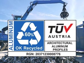 Otkrijte našu posvećenost održivosti kao jedna od rijetkih svjetskih kompanija sa certifikatom „OK Recycled“. Sa ponosom proizvodimo arhitektonske sisteme koristeći 60% recikliranog aluminijuma, smanjujući naš uticaj na životnu sredinu i promovišući zeleniju budućnost.