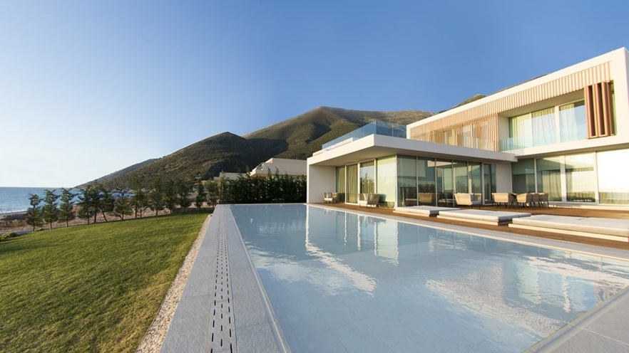 Sve rezidencije na Zelenoj obali gledaju na Jonsko more ispred objekata, dok neke imaju i zadivljujući pogled na planine. Kuće imaju od jedne do četiri sobe, dvorište sa travnjakom, privatni bazen i parking mjesto.
