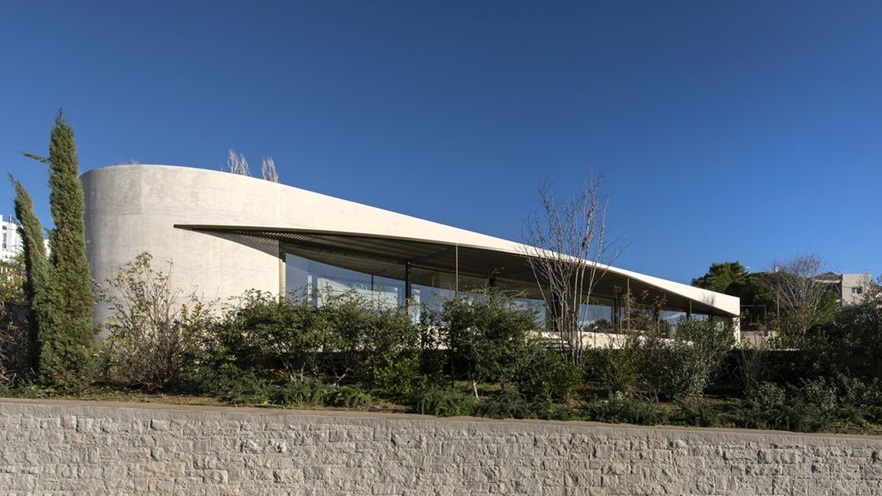 Ova moderna rezidencija s pogledom na Eubejski zaljev impresionira svojim trokutastim oblikom, suvremenim arhitektonskim pristupom i skladnim suživotom interijera i eksterijera.