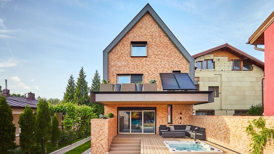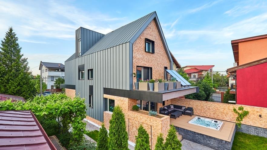 Modern architecture adopts traditional elements, that are present in Bucharest city, in order to compose a unique private residency. Strict tilts, and clear lines create a magical and harmonious material combination. The reflective attribute of the metal ceiling manages to decrease -at least in appearance- the size and the vertical structure of the house. Similarly, the bricks with earthly colors on the wall, offer unification between interior spaces, balconies, garden, and green areas.Results