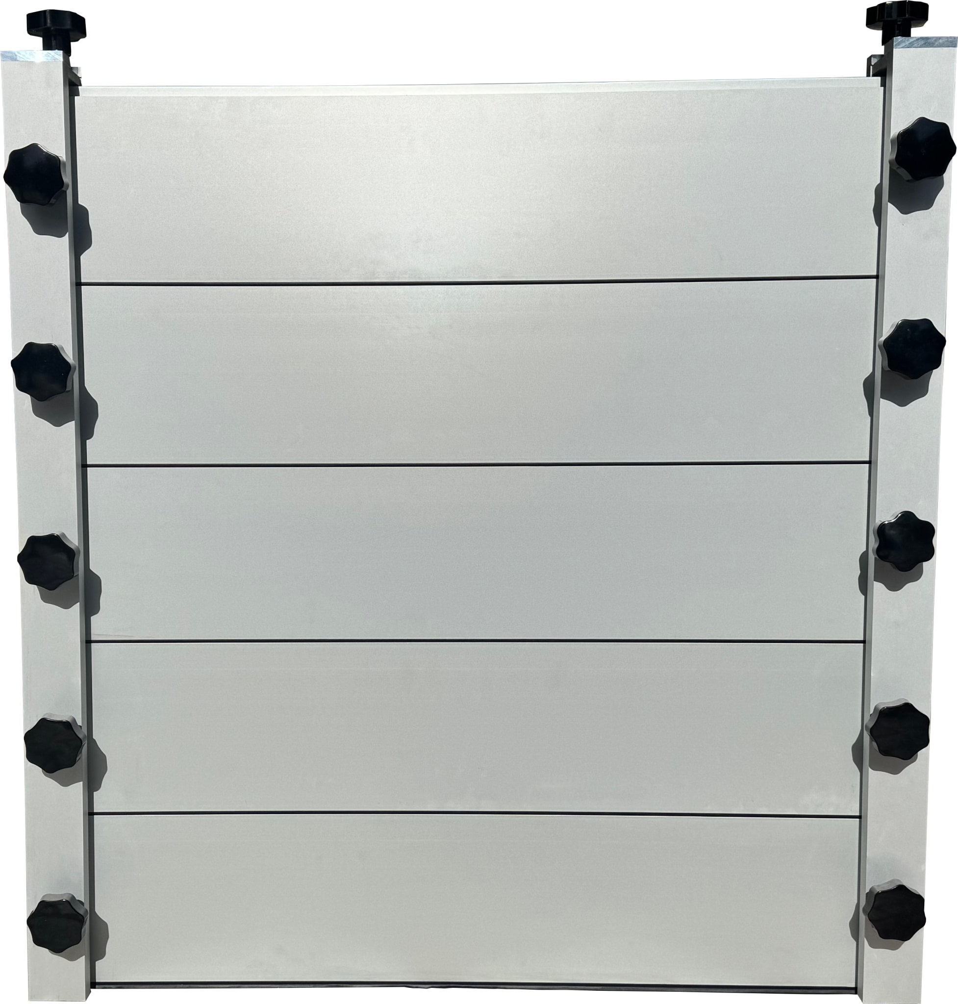 Τα πάνελ αυτά εισάγονται εύκολα στις βάσεις και διαθέτουν ενσωματωμένα στεγανωτικά ελαστικά στο κάτω μέρος τους. Οι βάσεις περιλαμβάνουν επίσης ελαστικά στεγανωτικά στις υποδοχές τους, διασφαλίζοντας πλήρη στεγανοποίηση και αποτρέποντας τη διείσδυση νερού. Επιπλέον, οι κολώνες διαθέτουν σφιγκτήρες κατά ύψος και ένα σύστημα πίεσης στην κορυφή, ώστε να μην περνάει ούτε σταγόνα νερού.