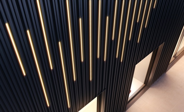 SMARTIA Barcode Cladding is not a common wall cladding system. It is an outstanding solution which offers numerous customization possibilities. Initially, Barcode Cladding is ideal for covering large surfaces. From commercial and office buildings to modern residences, ALUMIL’s new wall cladding series can support any construction. The system offers a wide range of profiles and colors, while it can be perfectly combined with LED lighting, perforated profiles and composite – wood products, such as Woodalux®. Its incomparable robustness makes it capable to cover whole buildings, providing a harmonious and unified result.