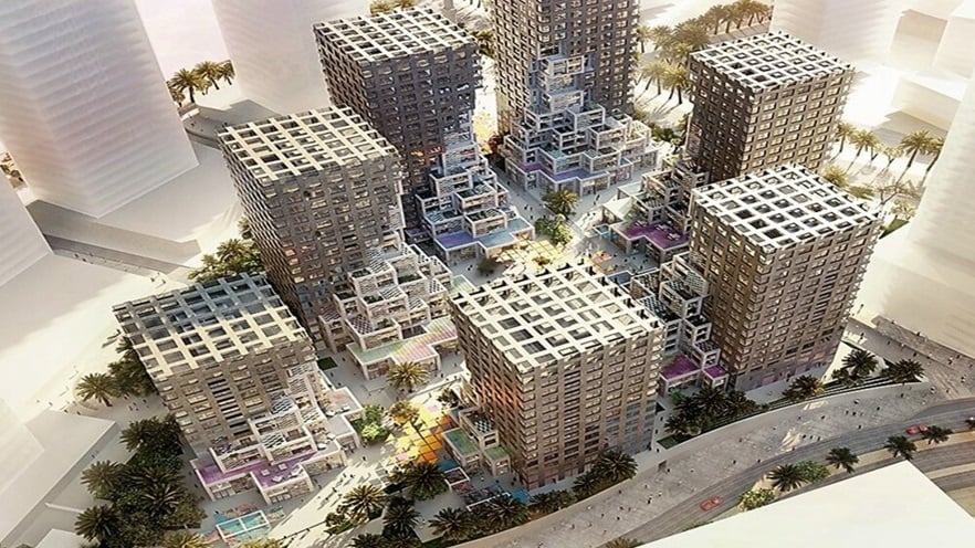 Contemporary minimal architecture stands asymmetrically to create natural wind tunnels and enhanced access to the plaza. Pocket gardens create oases of calm and spark the chance encounters that knit communities together.Project identity