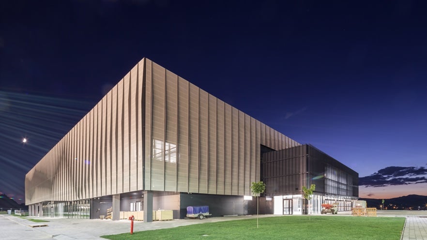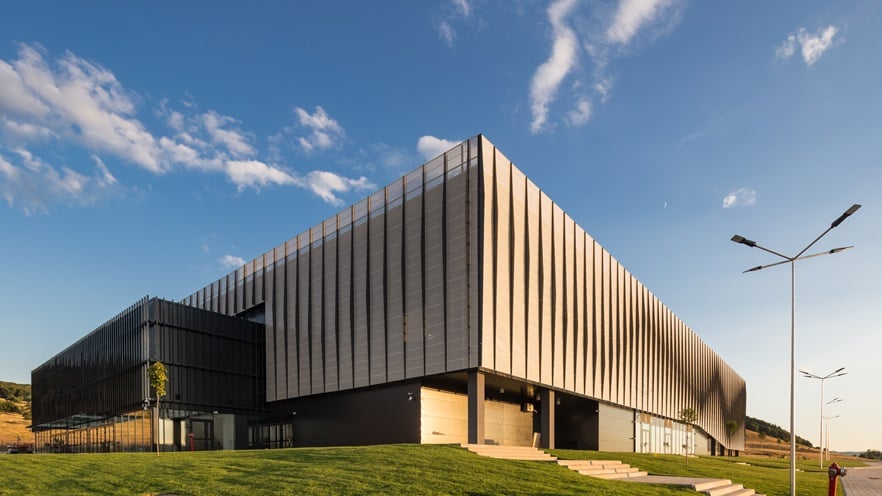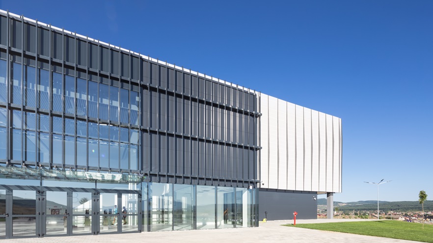 Printre provocările proiectului se află cea care ține de eficiența economică a soluțiilor, derivată din logica spațială și împachetarea rațională a funcțiunilor. Provocarea arhitecturală cea mai importantă a venit din răspunsul pe care l-a oferit biroul de arhitectură DICO&TIGANAS către contextul natural-peisager deosebit. Acesta i-a provocat să recurgă la o comunicare vizuală cât mai bună și subtilă între spațiile interioare care îmbracă sala principală si exteriorul natural sau amenajat. Astfel, biroul de arhitectură a recurs la transparență și transluciditate, obținută prin suprafețe vitrate și placaje cu tablă de aluminiu perforată, care capătă astfel și rol de protecție solară. Tâmplăriile din aluminiu și tabla perforată, tot din aluminiu, sunt elementele anvelopei care permit exprimarea ritmurilor compoziției arhitecturale, robuste, sobre și contemporane.