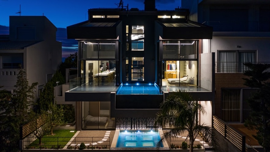 Ideea inițială a arhitectului Nicolas Frantzeskos, care a fost aplicată proiectării acestei case, poziționată la poalele Muntelui Hymettus, a fost deconstrucția formei clasice dreptunghiulare, cu cei patru pereți care definesc spațiul de locuit ale unei reședințe.