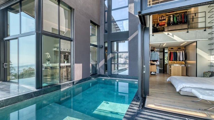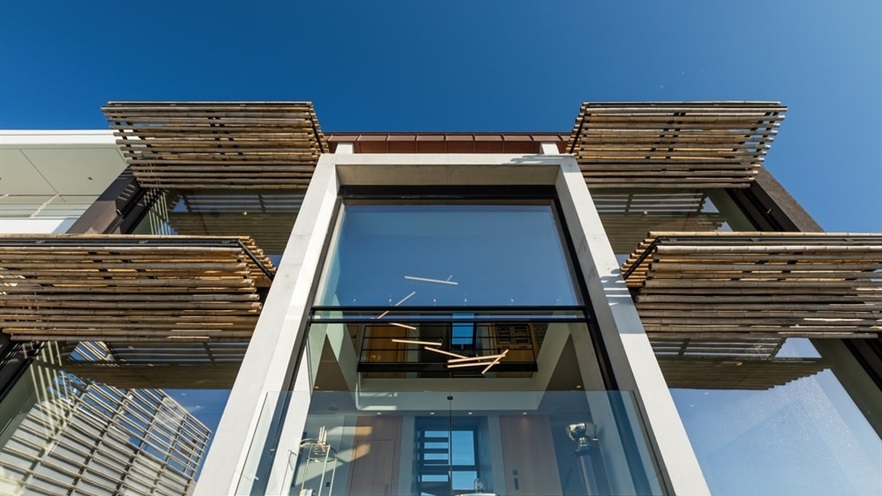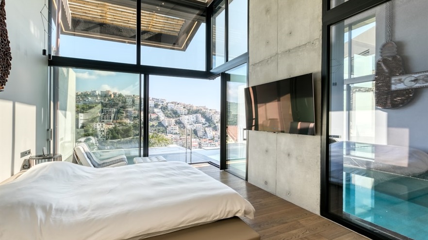 Pentru a păstra filozofia de proiectare a proiectului, au fost instalate sisteme izolate termic din aluminiu cu design minimalist, fiind alegerea ideală pentru a acoperi deschiderile ample, în timp ce lasă lumina naturală să pătrundă în interior, datorită vizibilității oferite de profilurile înguste din aluminiu. De asemenea, cu capacitatea construcțiilor de colț fără coloane fixe, există un sentiment unic de libertate și contact direct cu mediul extern. Mai mult, The Four Walls oferă o vedere minunată asupra Golfului Saronic și asupra Atenei.