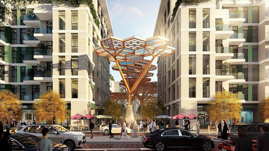 mixed-use buildings that sit at the heart of Gewan Island within a commercial