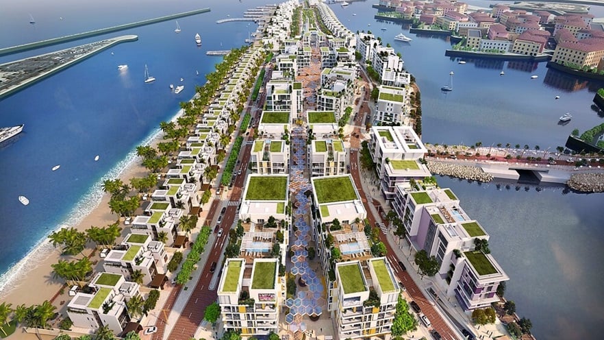 The development has a site of 67 ha and a gross floor area of 360,000 m² and boasts residential units ranging from serviced apartments to beachfront, waterfront, and exclusive island villas; two hotels; an entertainment hub and a 9-hole golf course, a clubhouse, and a mosque.
