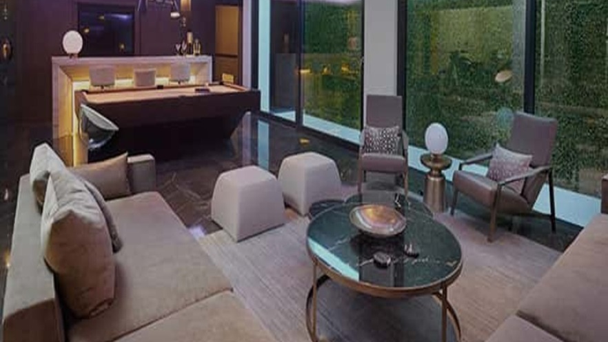 With more than 18,400 sq ft of built-up area, each six-bedroom villa has been designed with meticulous attention to detail. Each villa features an extensive basement including parking for up to five cars and three additional floors serviced by an elevator leading to the Penthouse bedroom on the second floor with its stunning views of the city and golf course. A neutral palette of materials such as travertine stone, marble, slate, walnut timber and porcelain combine to create residences that stand in stunning contrast to the lush surroundings of the Earth course. The result is an exceptional, truly modern living experience unlike anything else Dubai has to offer.